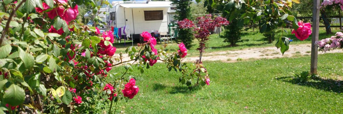- Piazzole in erba di circa 80 mq con acqua potabile, illuminazione e corrente elettrica.
